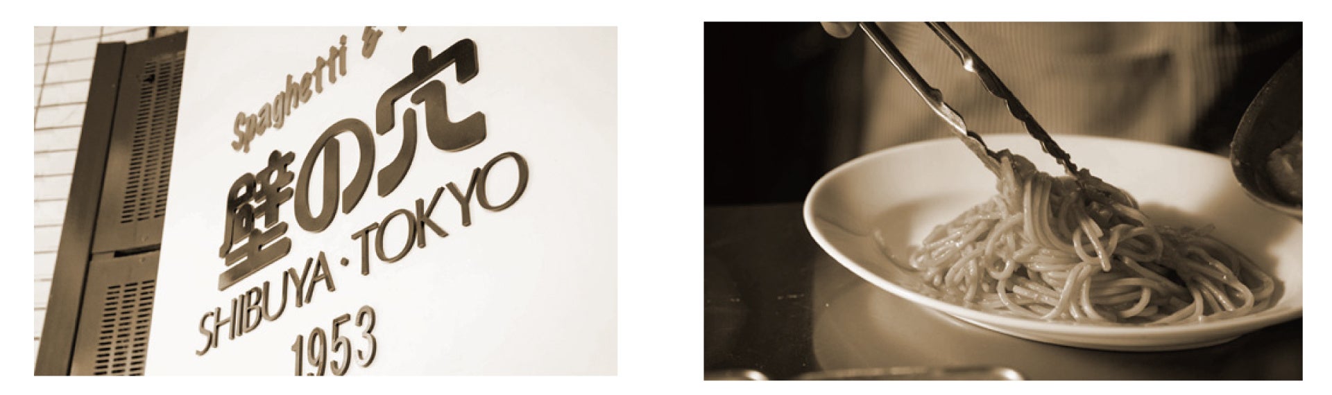 「和風スパゲッティの元祖」と称された成松孝安氏によって1953年、「Hole in the wall」として東京・田村町(現西新橋)に創業。その後、1963年、渋谷に移転。店名も「壁の穴」に変更しました。また、しめじスパゲッティ、椎茸スパゲッティなどを考案したり、昆布の粉をスパゲッティの隠し味に入れたりして和風スパゲッティを始めとする、200種類ものスパゲッティを考案。中でもお客様が持参したキャビアをヒントに生まれた「たらこスパゲッティ」はヒットメニューとなり、我々が考案した、そのトッピングはスパゲッティ界で上位にランクされる食材となりました。そして、昨年の創業70周年を契機に「“極上”元祖たらこスパゲッティ」としてグレードアップして生まれ変わりました。今後もお客様の意見に耳を傾け、喜んでいただけるメニューの開発に日々取り組み、お客様もメニュー・プロデューサーとして共に歩んでいければと願っております。