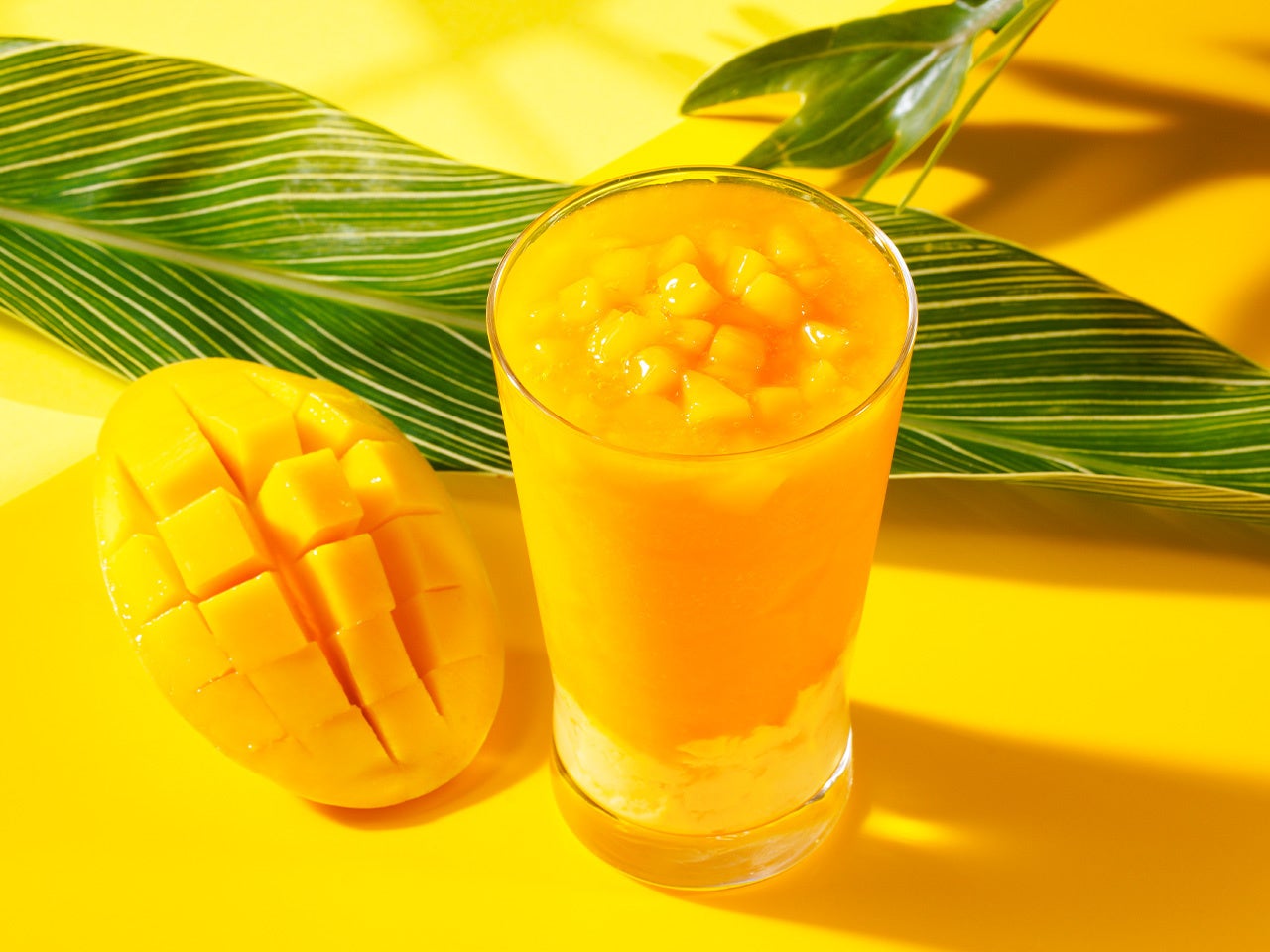 『完熟マンゴープリンスムージー』は、以前に販売し好評をいただいた「マンゴースムージー」がバージョンアップし登場したメニュー。マンゴーの果肉以外にオリジナルのマンゴープリンを使用しており、食感もお楽しみいただける商品に進化しました。すっきりとしたマンゴーの味わいやほどよい甘さのマンゴープリンのぷるぷる食感などをお楽しみいただけるデザートスムージーです。旬のフルーツを使用した、季節感たっぷりのスムージーをぜひご賞味ください。