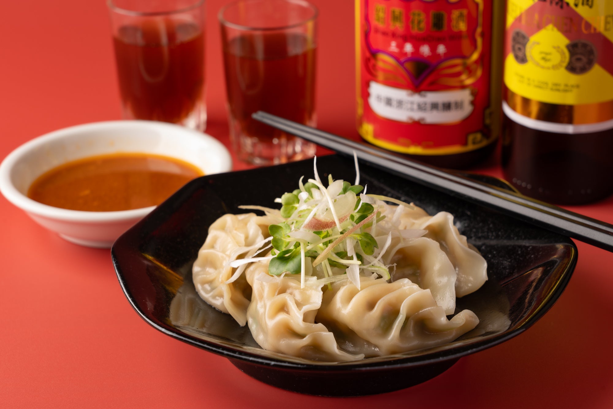 特製皮を使用した水餃子はよだれどりのソースをつけて食べるのがツウ。