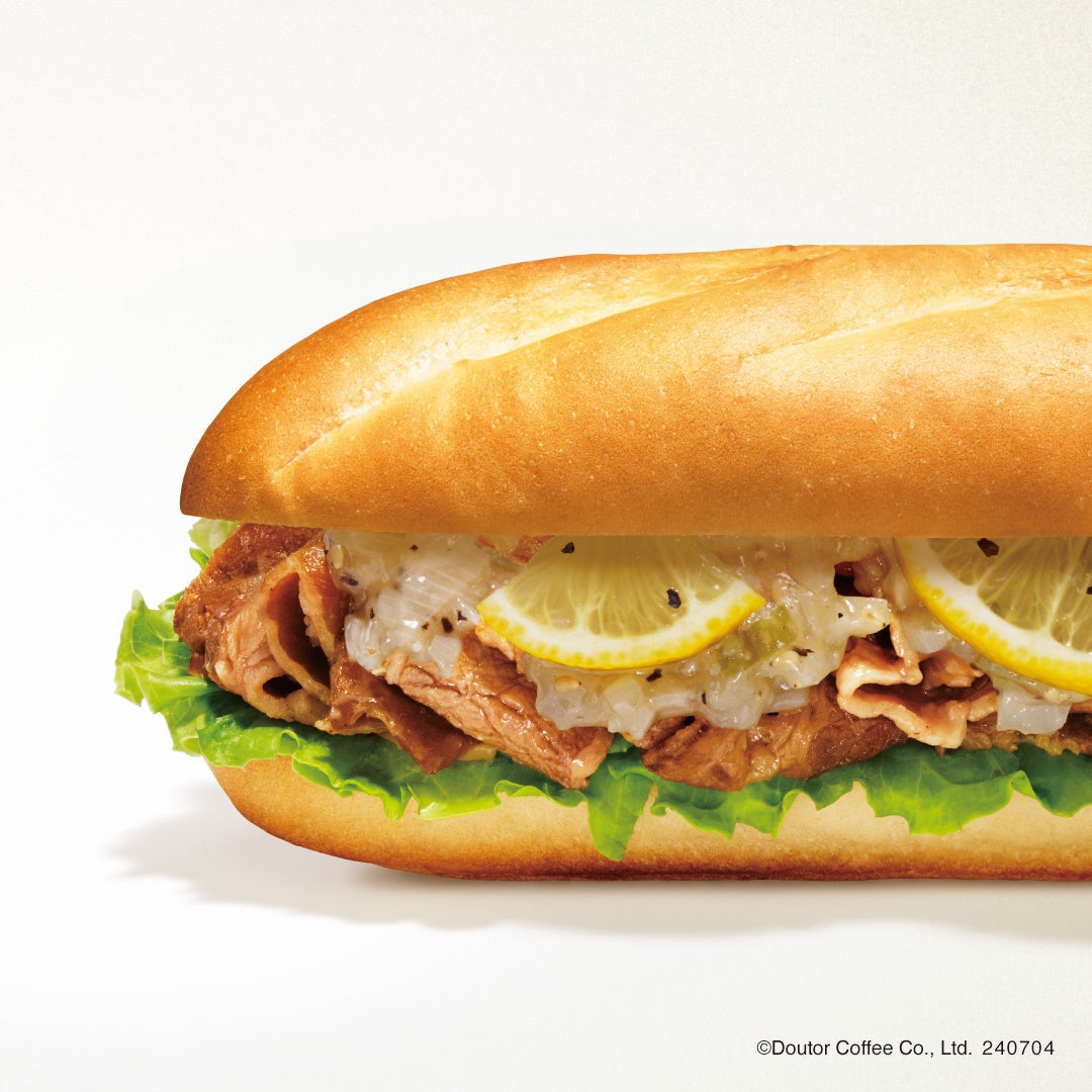 「期間限定ミラノサンド 牛カルビ」にねぎ塩とレモンをトッピングしました。しっかりとした味わいの牛カルビサンドに、具沢山なねぎ塩ソースとさっぱりとしたレモンがよく合い、食欲をそそる香りが楽しめるミラノサンドです。