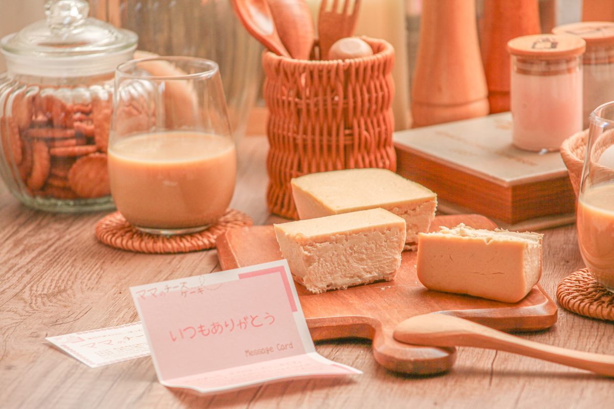 ママのためのチーズケーキはママとママの子たちが一緒に笑顔になれるように保存料や人工甘味料、小麦粉をつかわず、素材へこだわり、1本1本丁寧に手づくりで焼き上げております。