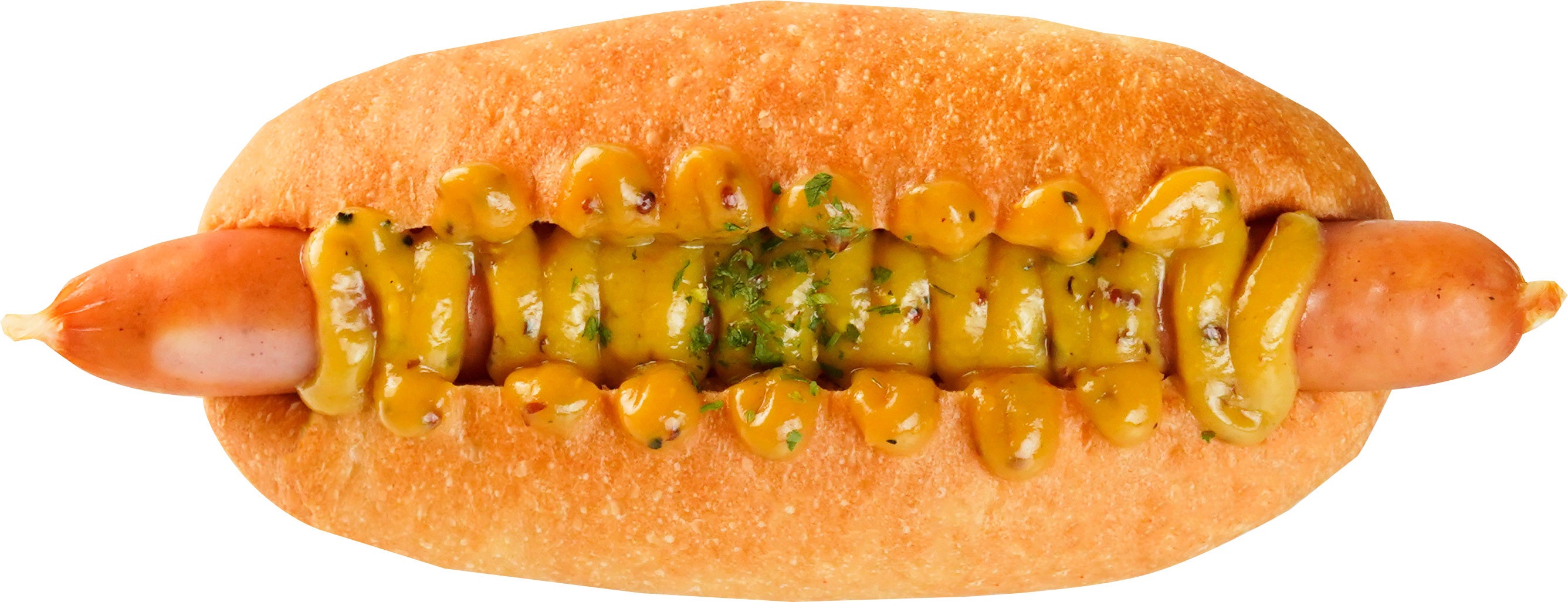 サクラチップで丁寧にスモークされたパキッと食感の粗びきソーセージに特性マスタードソースをたっぷりかけました。