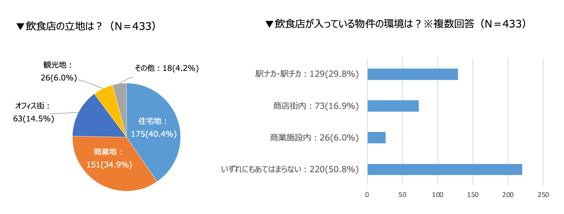 また、回答者の業態及び店舗の立地は下記の通りです。
