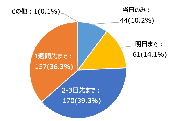 ▼どのくらい先まで天気予報をチェックしていますか?(N=433)