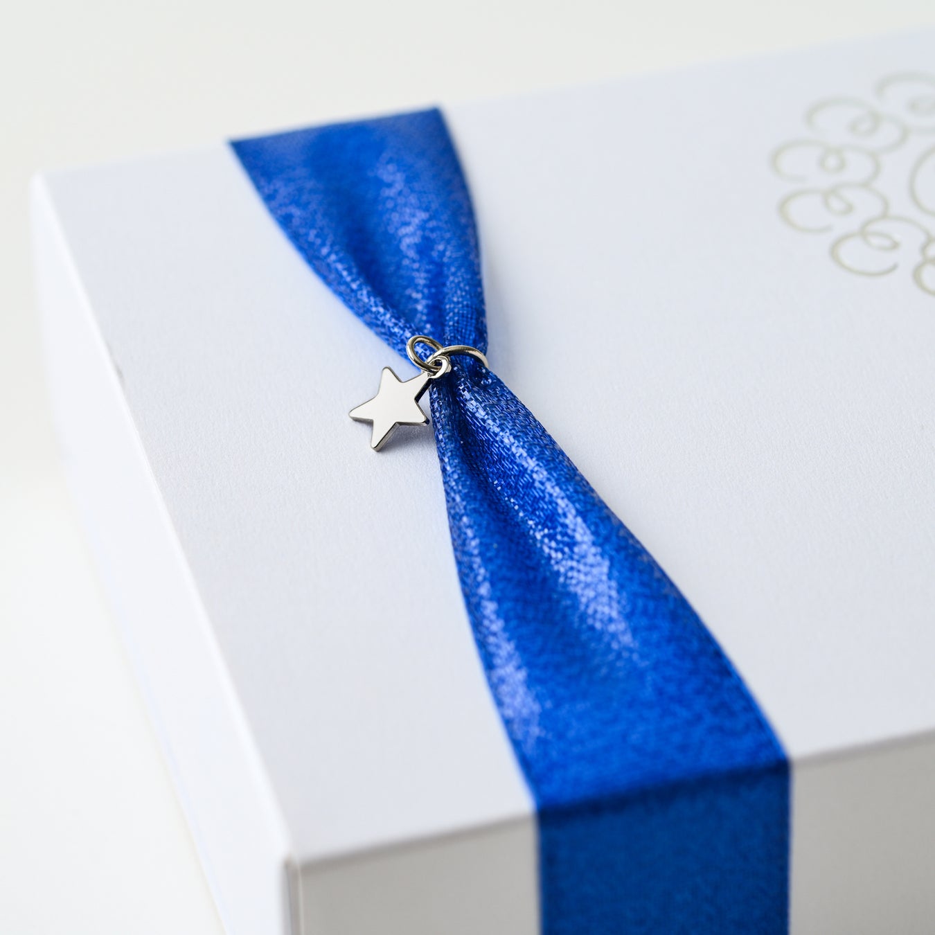 天の川を模したブルーリボンに星が一粒煌めくチャームをつけた特別パッケージは、7月7日七夕までの限定販売となります。日頃の感謝を伝えるプレゼントや夏のお手土産にぜひご利用ください。