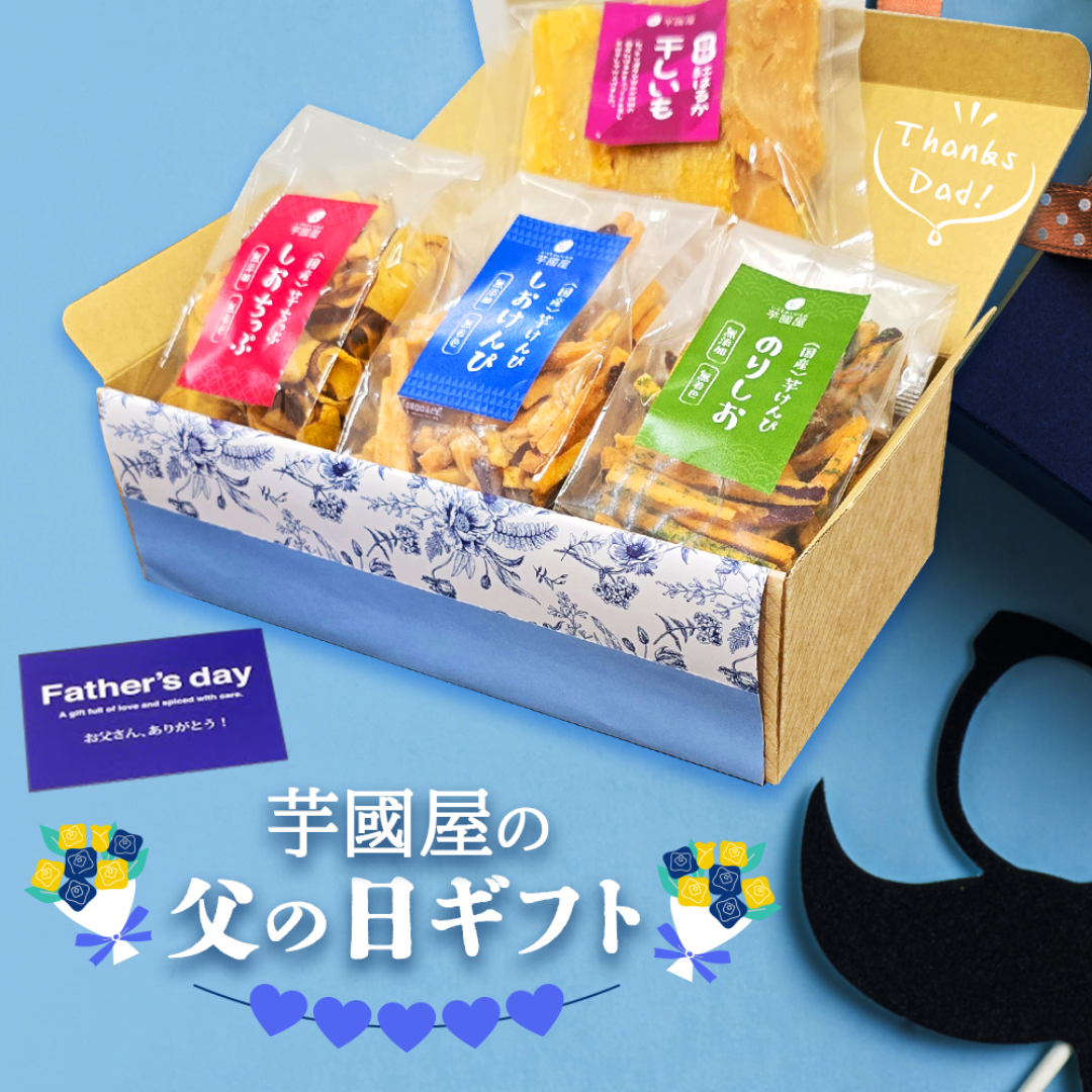 感謝の気持ちを込めて贈る干し芋や、芋けんぴはお酒のおつまみにもなり父の日のプレゼントとしても大人気です。