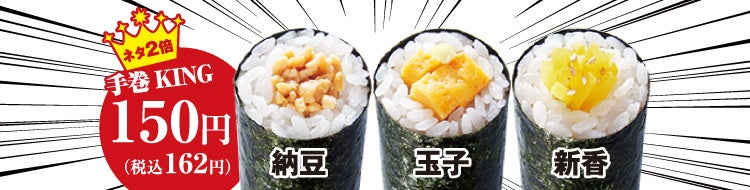 ネタ2倍 手巻KING 各150円(税込162円)