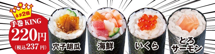ネタ2倍 手巻KING 各220円(税込237円)