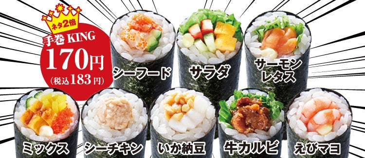 ネタ2倍 手巻KING 各170円(税込183円)