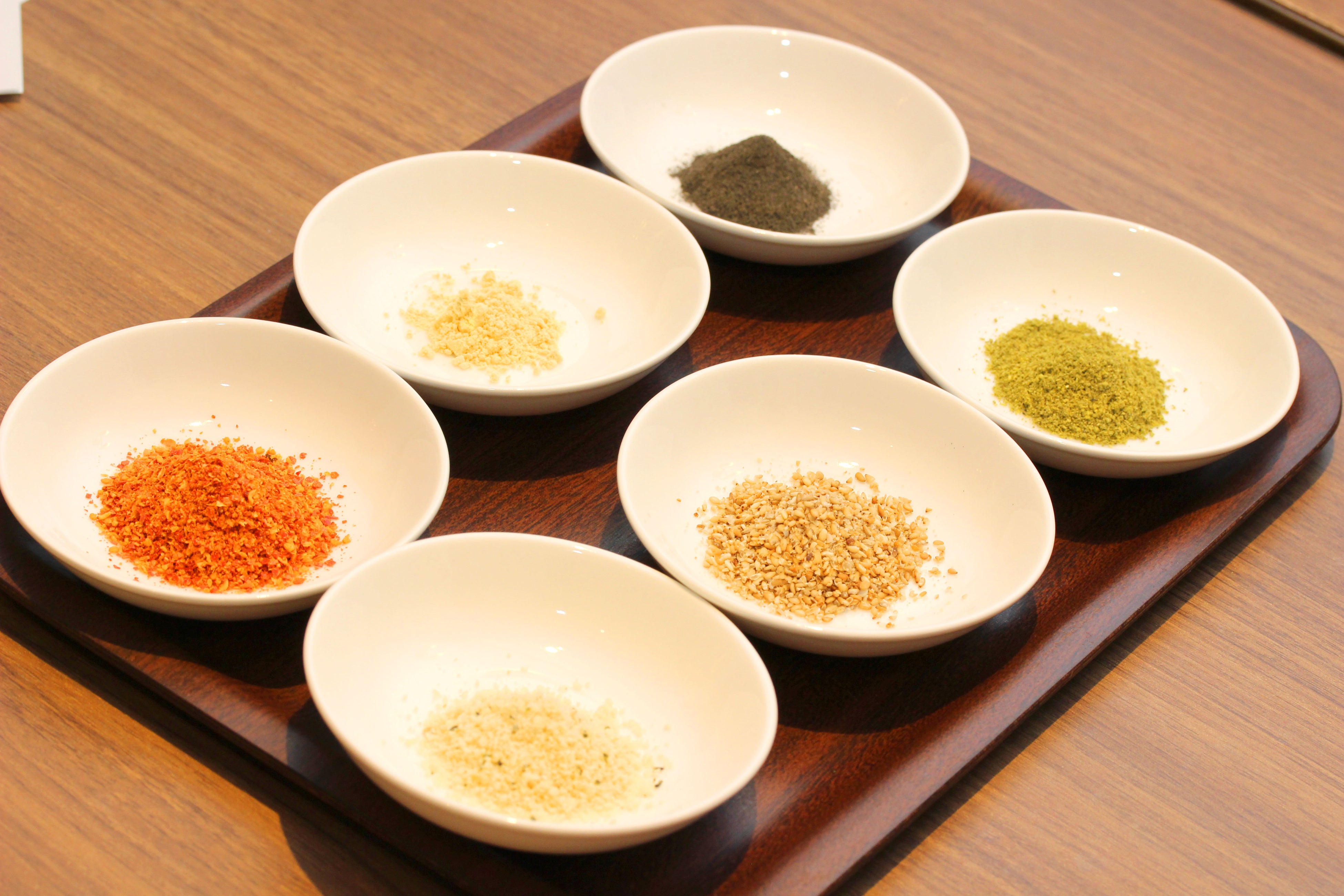 しっかりとした辛味をもつ唐辛子、辛味と香りを併せもつ山椒や生姜、豊かな風味の麻種(麻の実)・白ごま・しそ。