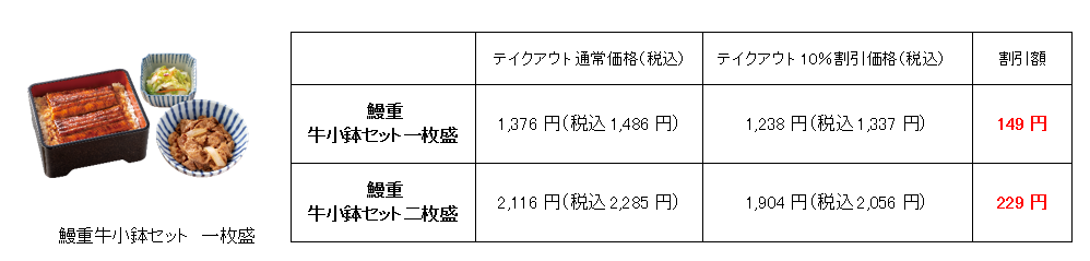 株式会社吉野家(本社:東京都中央区、代表取締役社長 河村泰貴、以下吉野家)は、土用の丑の日7月24日(水)を含む7月20日(土)から7月29日(月)の期間中に、「鰻重」「鰻皿」を事前にテイクアウト予約した方に限り、受け取り時のお会計を税込価格から10%割引します。さらに、初の施策として、次回の利用から使える「全品100円引きクーポン」を会計時配布します。「全品100円引きクーポン」は受け取り順に配布し、なくなり次第終了します。対象期間中の「鰻重」「鰻皿」テイクアウト予約は6月17日(月)10時から7月28日(日)24時まで、テイクアウト・デリバリー専門店を含む吉野家全店舗※1の店頭と電話で承ります。また、7月19日(金)からはテイクアウトスマホ予約でも予約を受け付けます。 ※一部、実施対象外の店舗があります。