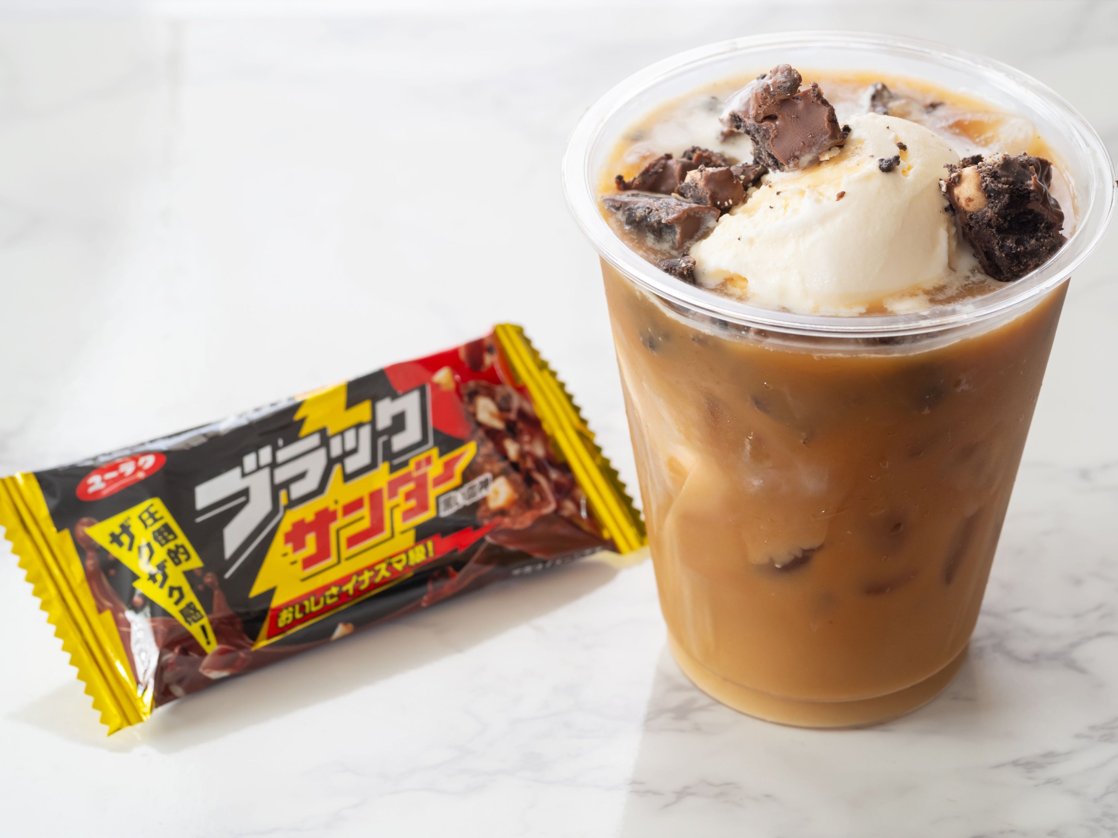 ➀ザクザク食感なドリンク!?「ブラックサンダーのコーヒーフロート」