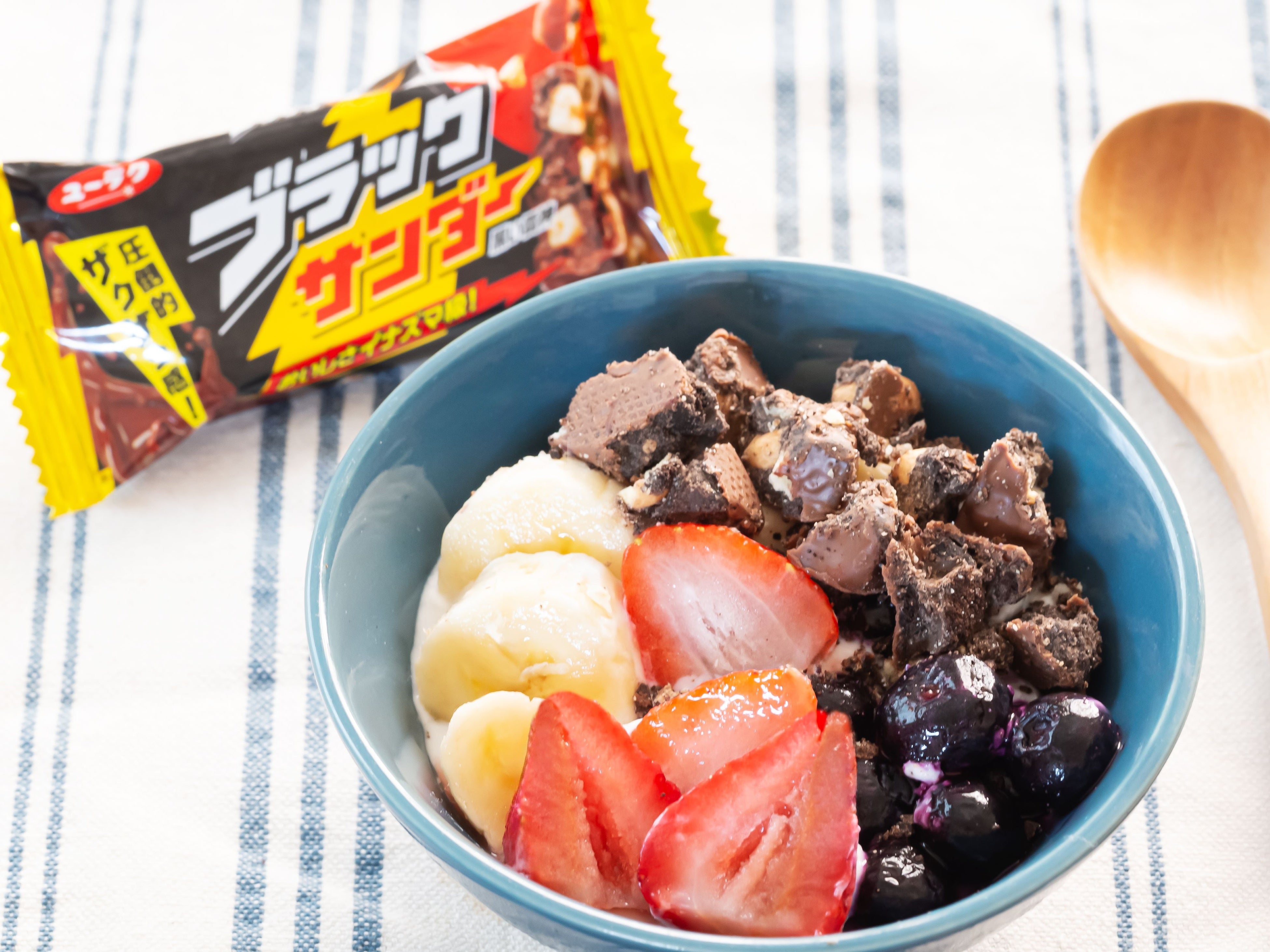 ③お好きなブラックサンダーとフルーツで自分好みに「ブラックサンダーのグリークヨーグルトボウル」