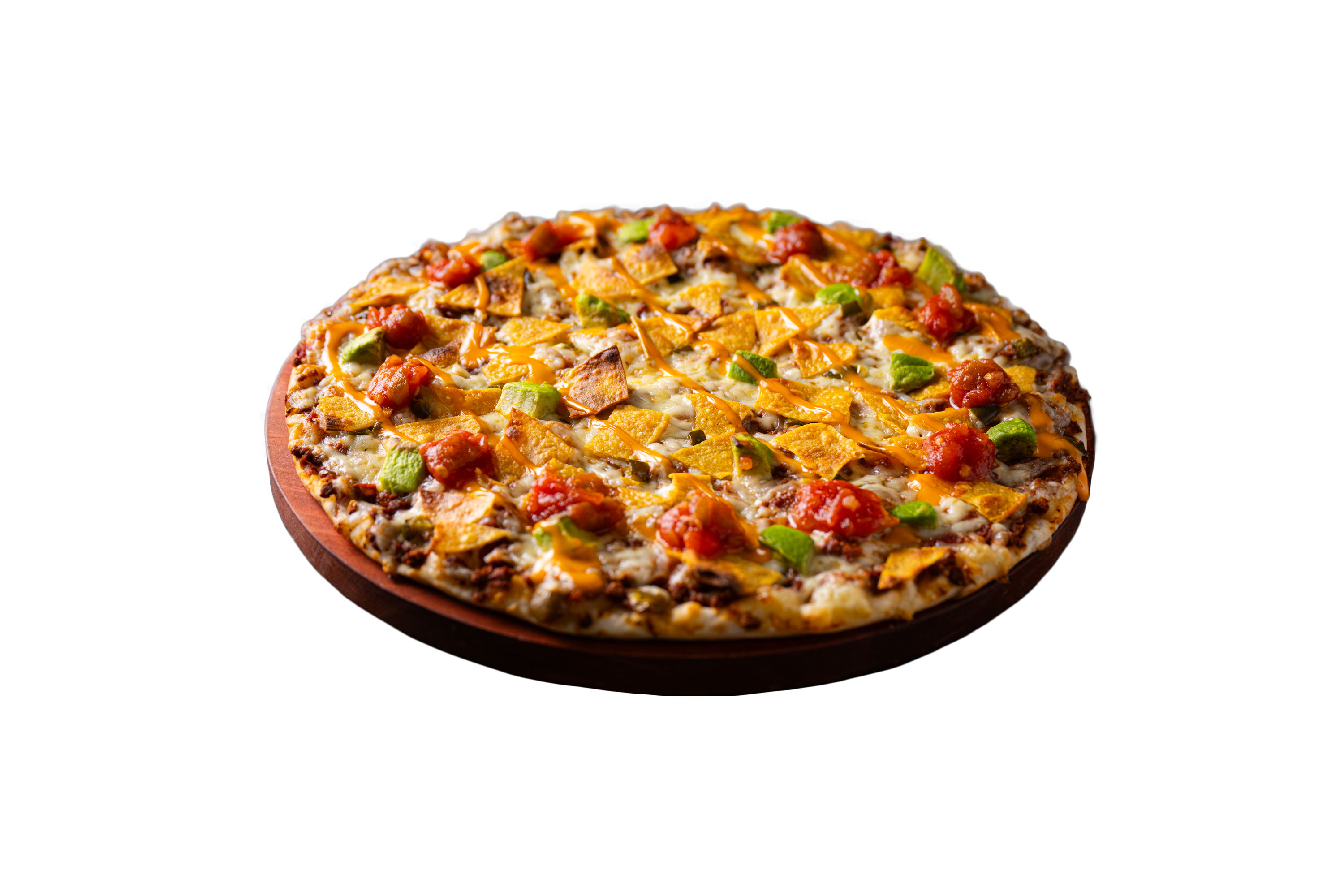ピザ生地に、タコミート、アボカド、ハラペーニョ、サルサ、チーズソース、トルティーヤチップをトッピングしTEXMEXを代表するスナック「ナチョス」を表現しました。Hot & SpicyなTEXMEX王道の味をお楽しみください。