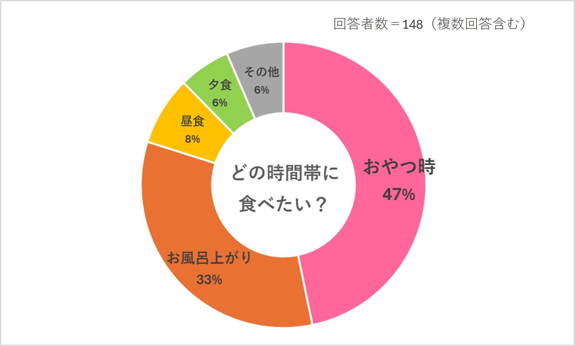 「おやつ時」に食べたいとの意見が約半数でした。