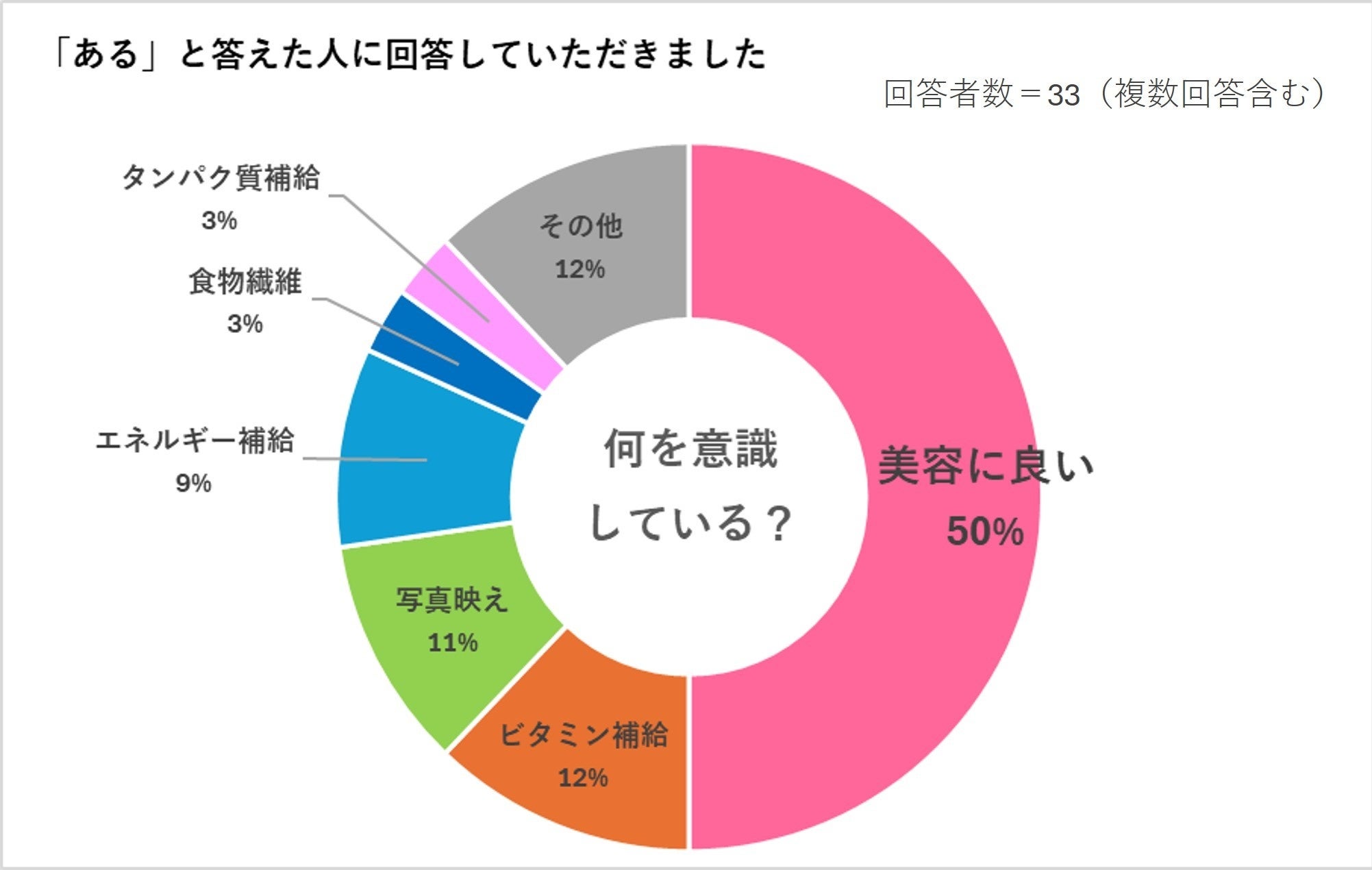意識している方の回答では、美容に良いものを選ばれる方が半数でした。