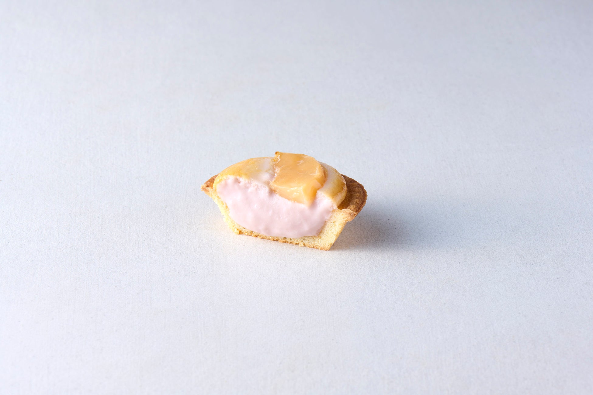 解凍する時間によって異なる食感が楽しめる「フロマージュタルト(ピーチ)」は、冷凍の状態でご自宅に届く商品です。クリーミーなマスカルポーネチーズが、桃色のピーチピューレの爽やかな甘さを引き立て、見た目も味も可愛らしい上品な仕上がりとなっています。