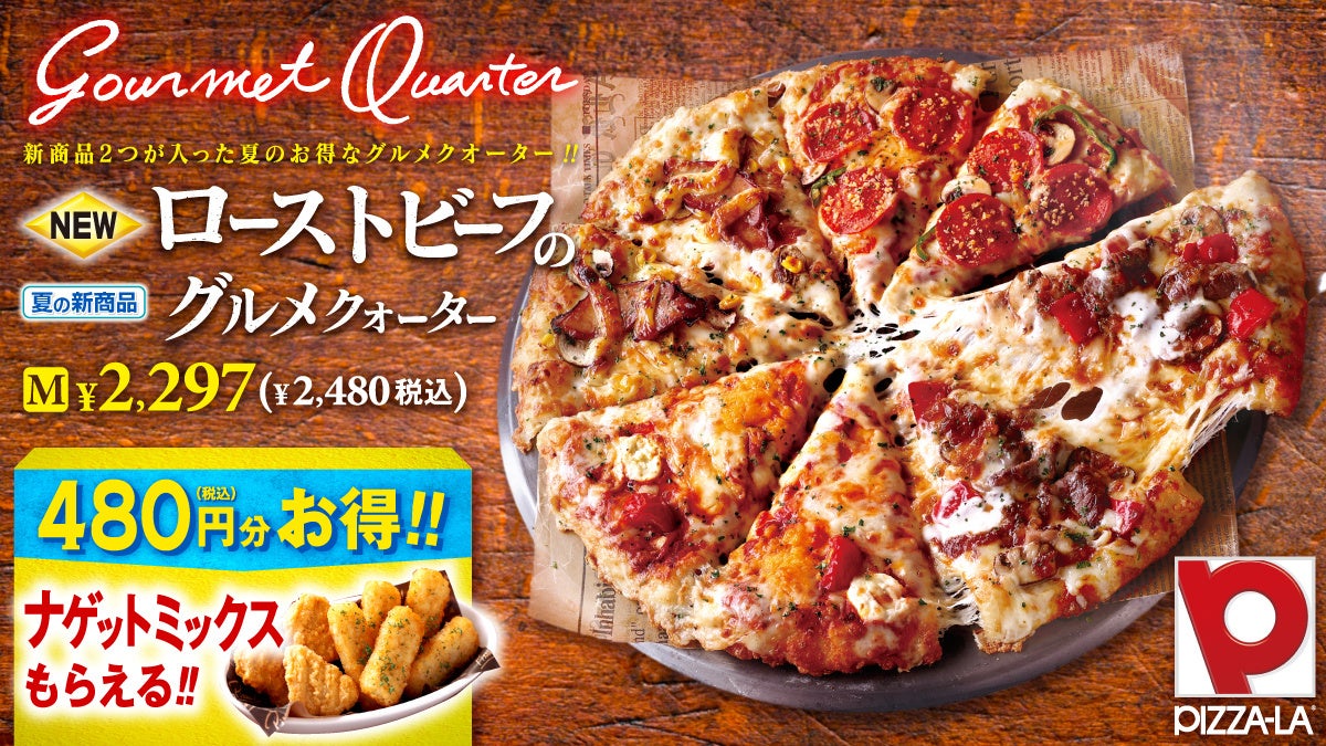 さらに『ローストビーフのグルメクォーター』をご注文いただくと「ナゲットミックス」または「お好きなドリンク(ピザMサイズで2本・Lサイズで3本)」がもらえるキャンペーンも実施します。