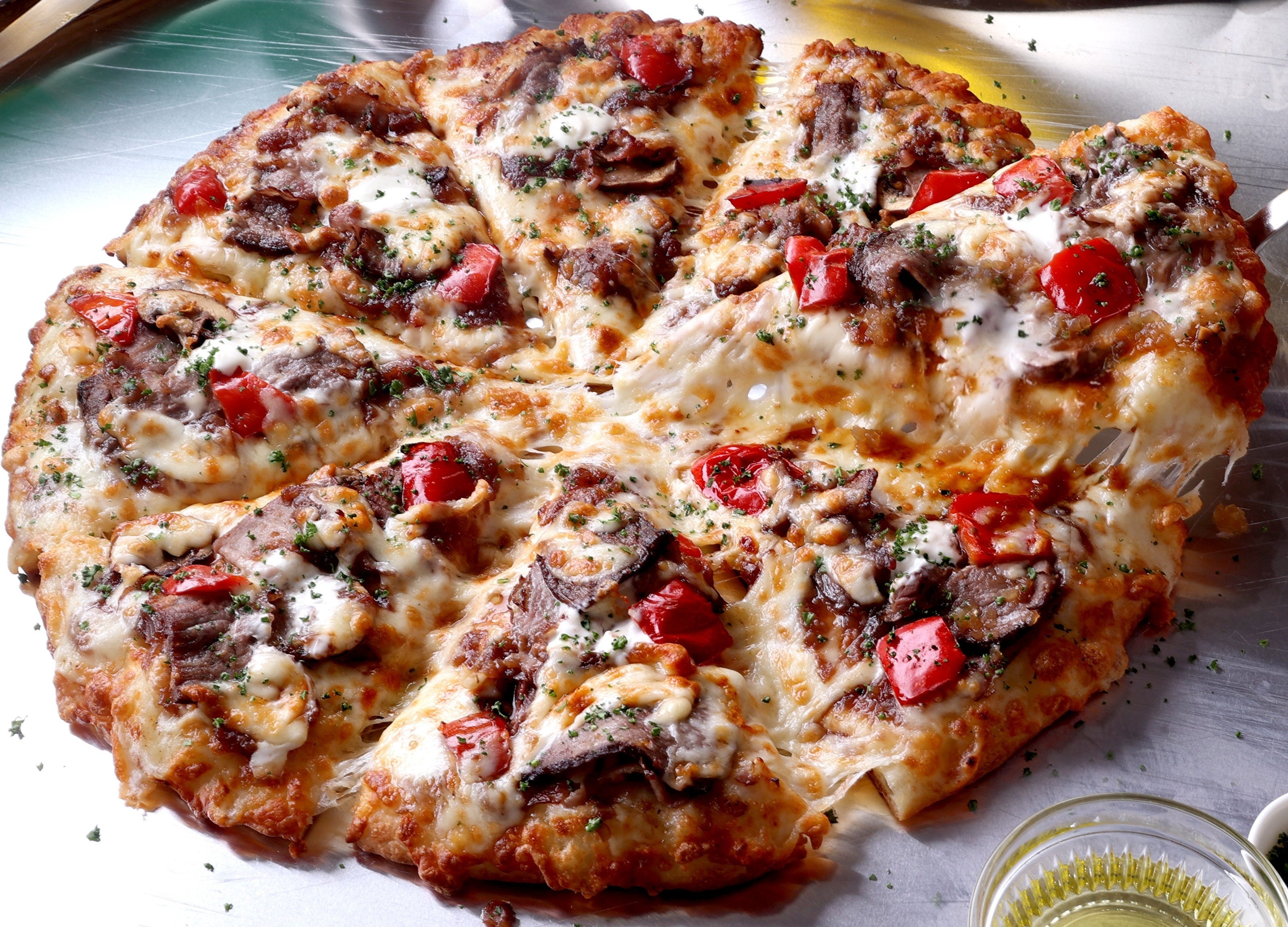 ■ローストビーフの旨みに特製シャリアピンソースの贅沢な味わい「ローストビーフの贅沢ピザ」