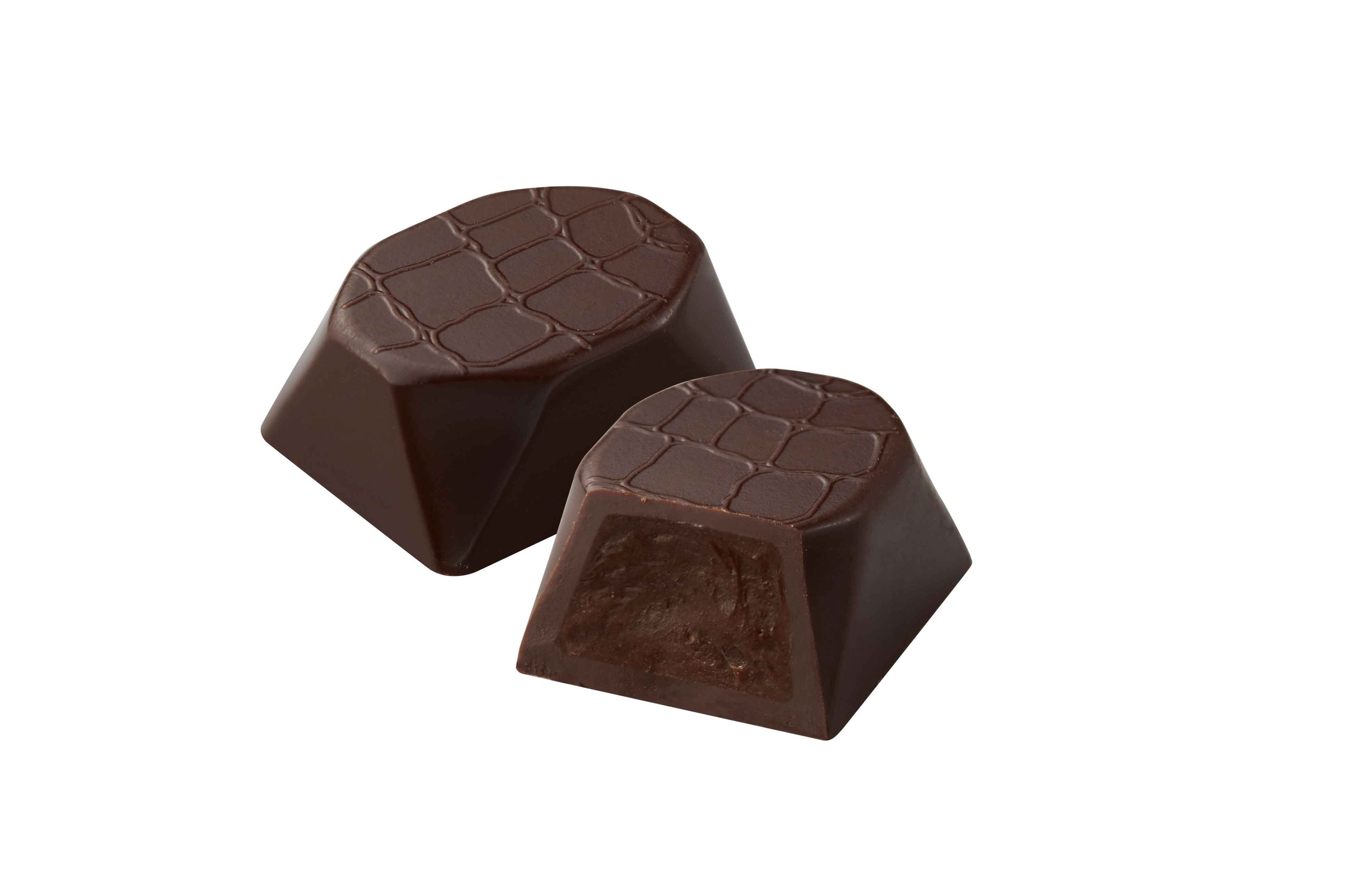 ダークチョコレートガナッシュを、ダークチョコレートでコーティングし、印象的なクロコ柄のデザインを施しました。