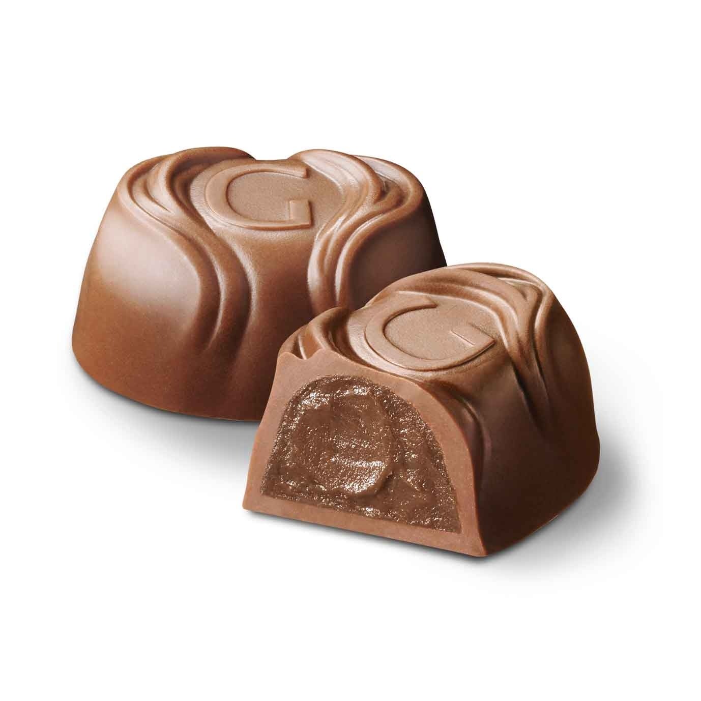 キャラメルがけしたマカダミアナッツと、サクサクとしたショートブレッドビスケットの食感が魅力的なヘーゼルナッツプラリネを、甘美なミルクチョコレートで包みました。