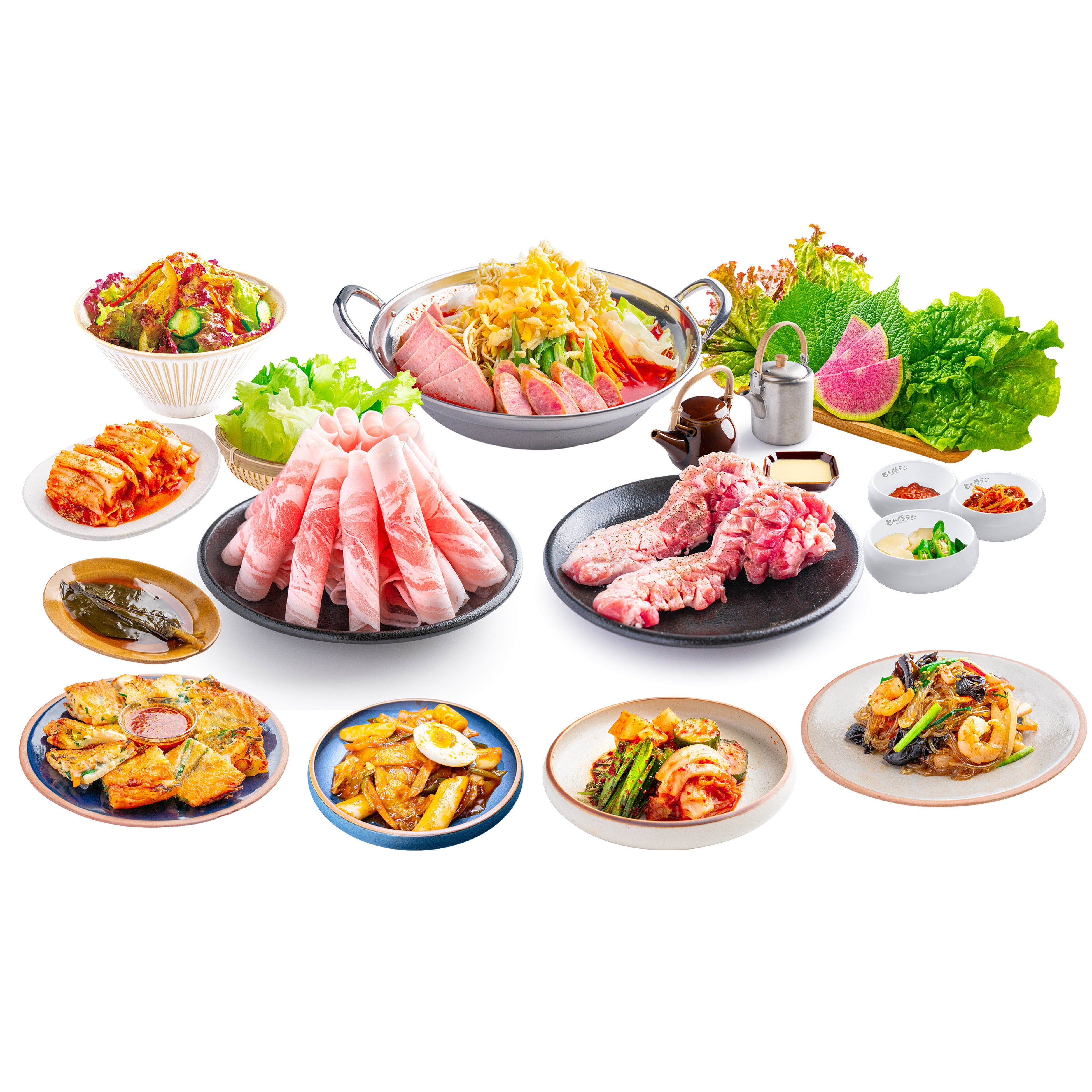 こちらのセットは、厚切りサムギョプサル、肩ロース、豚トロに豊富な包み野菜、薬味、韓国おかずにスープ(スンドゥブチゲ、テンジャンチゲ、ユッケジャンから選択)、ライスと本場さながらの内容になっております。