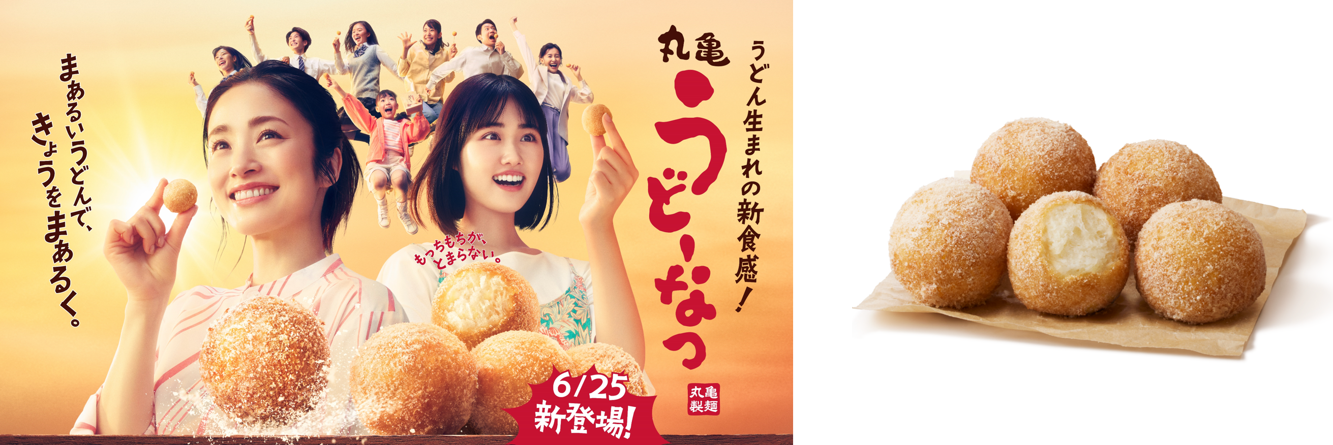 丸亀製麺では「食の感動体験」を日々追求しています。「打ち立てのうどんをいつでもどこでも楽しんでほしい」という想いから生まれ、2021年4月の販売開始後、累計4,200万食を超えるほどの好評をいただいている「丸亀うどん弁当」 、「感動テイクアウト」のコンセプトのもと、打ち立てうどんのおいしさをさらにスタイルフリーで楽しむ「丸亀シェイクうどん」を販売してきました。この度、丸亀製麺ならではの新たな感動体験として、うどんから生まれたドーナツ「丸亀うどーなつ」を発売いたします。