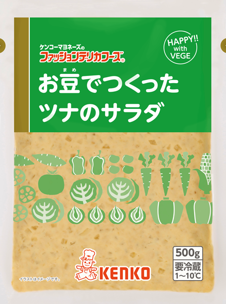 多様化する食の嗜好、新しい食スタイルや環境問題からくる食糧事情などに対応し、乳製品や卵、肉類を使わず、植物性原料を中心に仕上げたプラントベースのブランド「HAPPY‼ with VEGE®」の新アイテムです。えんどう豆をベースに植物由来の素材を厳選し、ツナ風サラダに仕上げました。気候変動などによる原料面での不安要素を減らすことで、持続可能な社会づくりに貢献してまいります。