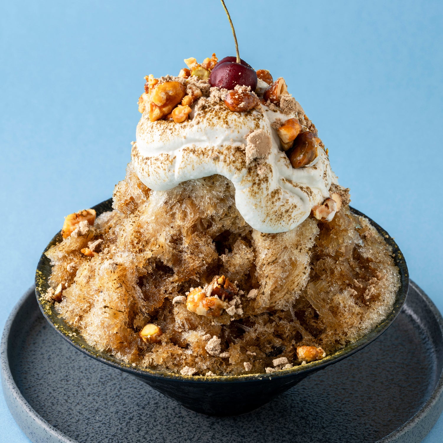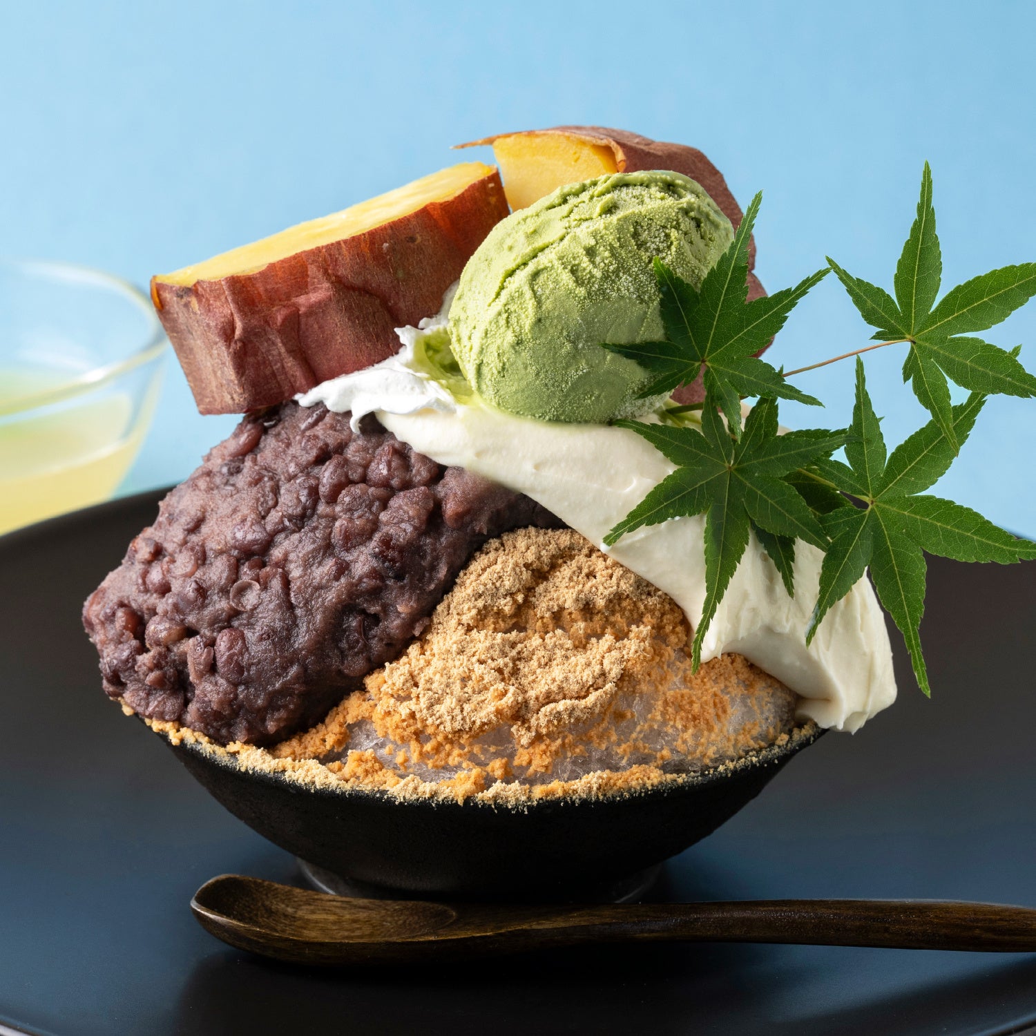 繊細な口どけの天然氷の上には、きなこと北海道産のあずきを使用した粒あん、丁寧に焼き上げた冷やし焼き芋、そして西京味噌とクリームチーズを組み合わせたソースをトッピング。追いがけ用の西京味噌シロップをかければ、最後の一口まで楽しめます。和菓子のように味わえる新感覚のかき氷となっています。