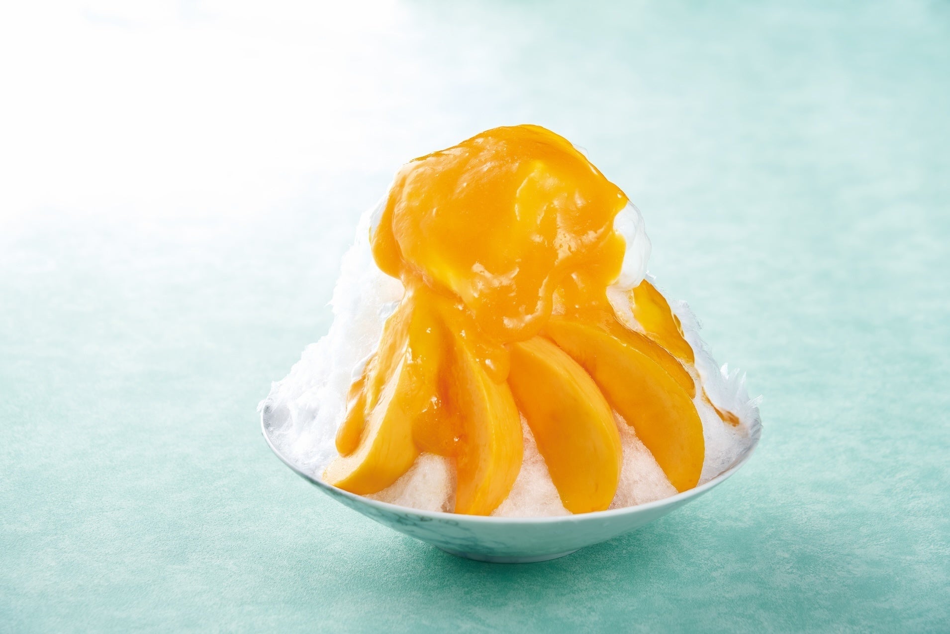 ふんわり削った氷に口溶けのよいミルクホイップ、特製の甘熟マンゴーソース、さらにフレッシュなマンゴーを添えた、マンゴーづくしのかき氷です。