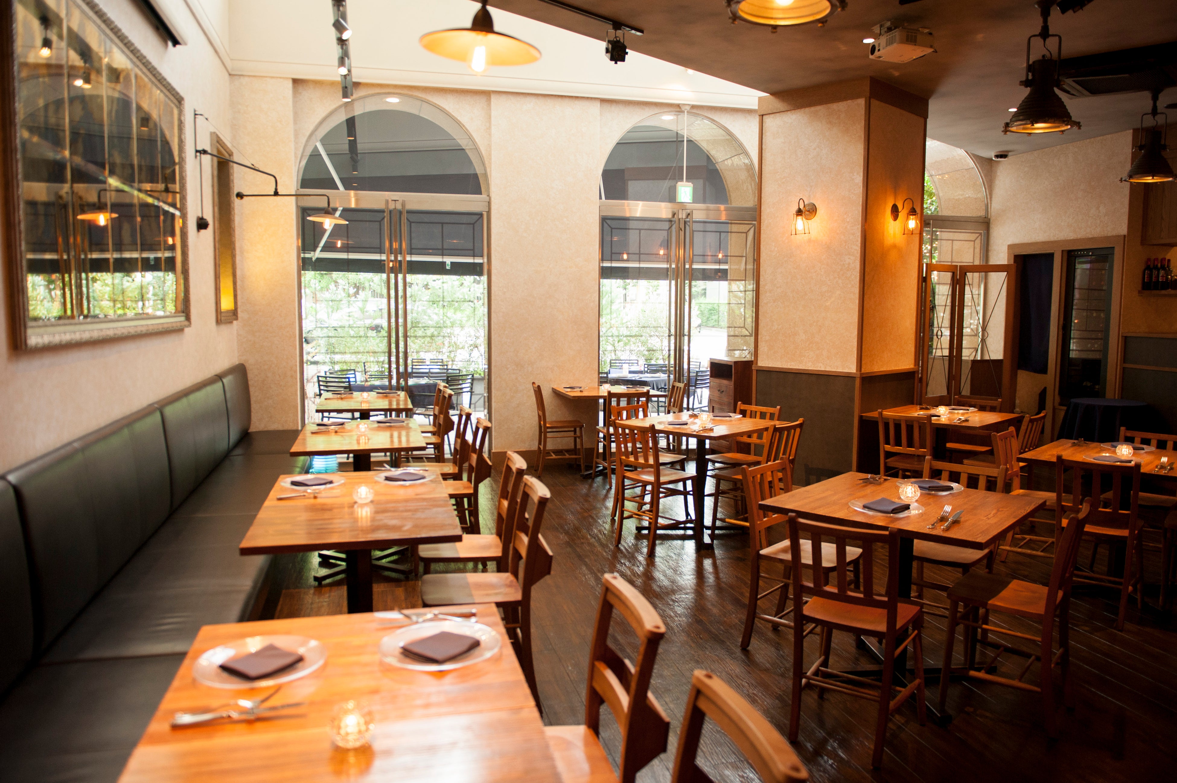 旧山手通り沿いに佇む、目を引く西洋風の建物とネイビーの日よけが特徴の「BISTRO FAVORI 代官山」。店内は、昔のフランス邸宅を彷彿とさせるノスタルジックな空間で、訪れるすべてのゲストを暖かく迎え入れます。
