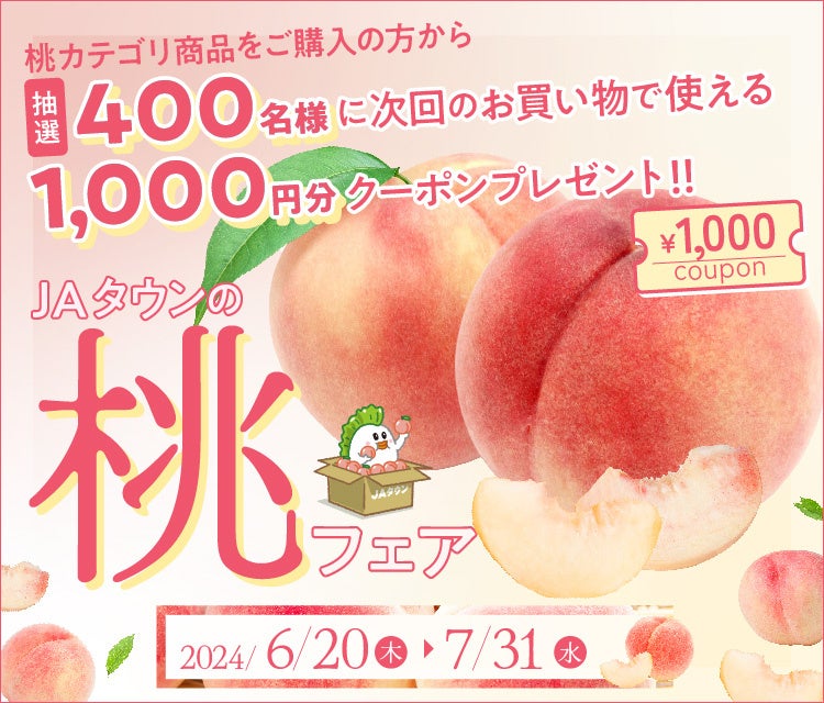 2.内 容:JAタウン会員登録済みで、期間中にJAタウン内で対象の桃商品を合計8,000円(送料込)以上購入いただいた方の中から抽選で35名様にJAタウンギフトカード5,000円分をプレゼント。