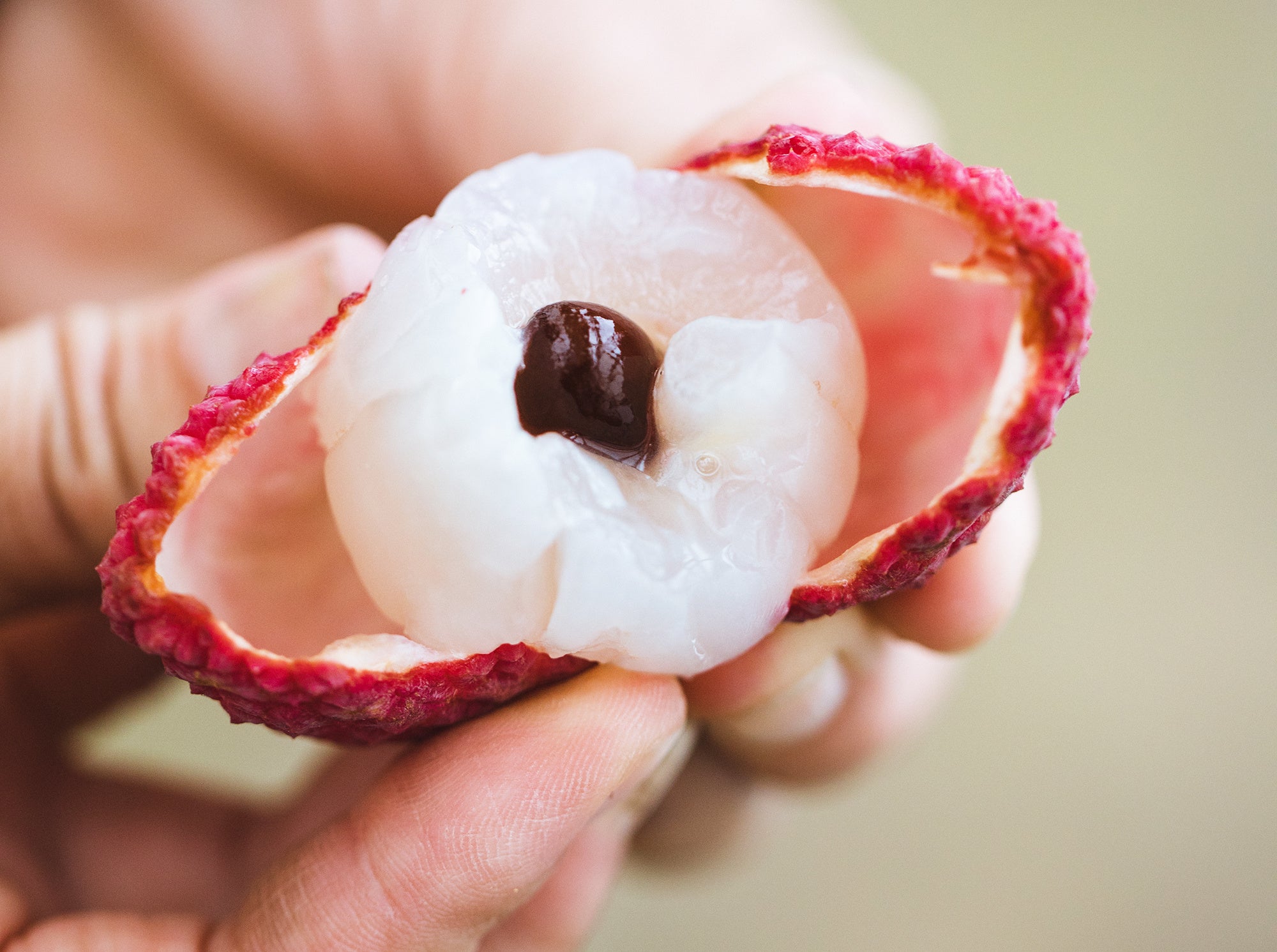 白く透き通った肉厚の果肉と、あふれる果汁が特徴の「新富ライチ」に合わせた甘さを控えた生クリームが生ライチの美味しさをより一層引き立てます。