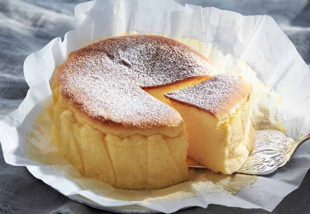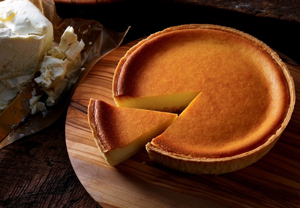 2種類のチーズを牛乳に溶かしながら丁寧に生地を仕込み、じっくりと時間をかけて蒸し焼きにすることで生まれる、しっとり、ふわふわな食感となめらかな口どけ。ミルキーなクリームチーズとコクのあるチェダーチーズ。2種類のチーズが生み出す奥深い味わいと、口の中でしっとりなめらかにとろける食感が楽しめる、贅沢なスフレチーズケーキです。