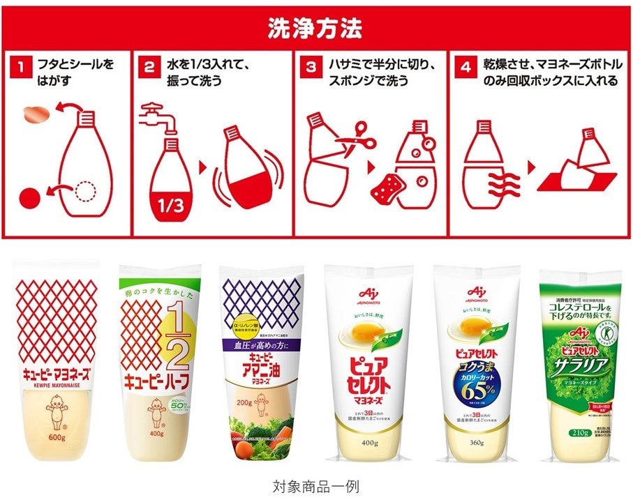 ※1 マヨネーズ(JAS規格)以外の半固体状ドレッシングなどのボトルも対象になります。例)「キユーピーハーフ」「ピュアセレクト® コクうま® 65%カロリーカット」など