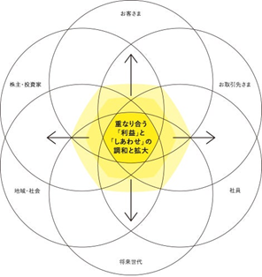 丸井グループは「すべての人が『しあわせ』を感じられるインクルーシブな社会を共に創る」ことをミッションとしています。このように大きなミッションを当社の力だけで実現することは叶いません。そこで、私たちは将来世代を含むステークホルダーとの「共創経営」を実践することで、すべての人の「利益」と「しあわせ」の調和を実現し、ビジネスを通じて社会課題の解決と利益の両立をめざしています。ミッションの達成に向け、当社は、サステナビリティとウェルビーイングに関わる取り組み目標を「インパクト」として定義しており、3つのインパクト目標の1つに「将来世代の未来を共に創る」を掲げています。私たちにとって未来そのものである将来世代が持つ価値観や発想力こそ、社会をより良い方向に変えていく原動力だと信じています。
