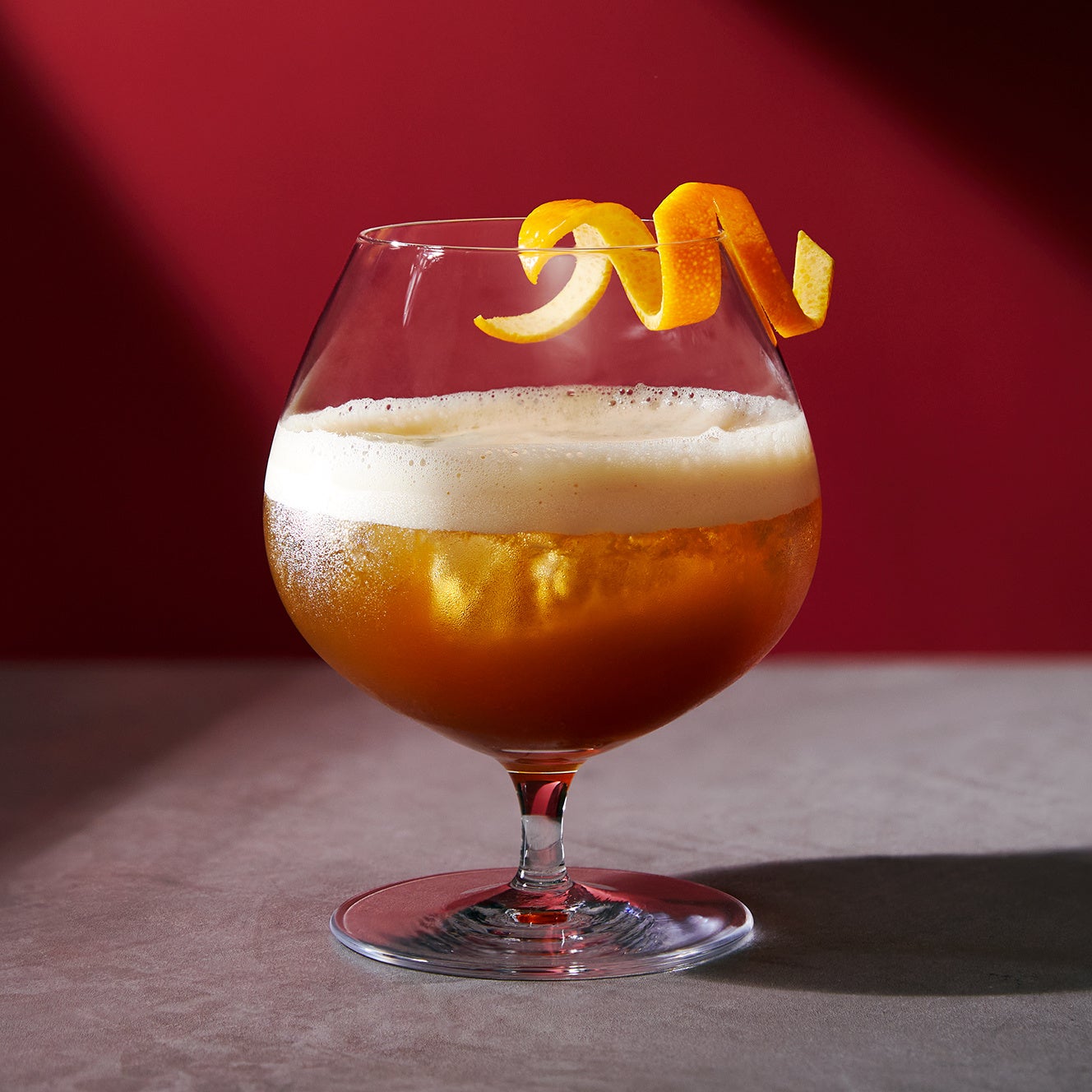 ロースタリー 東京でのアペリティーボ体験のために開発した、夕焼け色が美しいコーヒーカクテル。ロースタリー 東京のシグネチャーともいえる、ウイスキー樽(バレル)の中で熟成(エイジド)させて生豆にウイスキーの風味を移したコーヒー『ウイスキー バレル エイジド コーヒー』に、ハーブやスパイスが香るビター感が特長の 「アマーロ」と、アニスやバニラの甘やかな香りが際立つ「ガリアーノ」を合わせました。このイタリア生まれの2種のリキュールと、香り高いコーヒーの味わいが溶け合い、多層的に重なりあう唯一無二の一杯です。琥珀のような輝きのカクテルを夕空に重ねながら、ゆったりと移ろう贅沢な時間をお楽しみください。