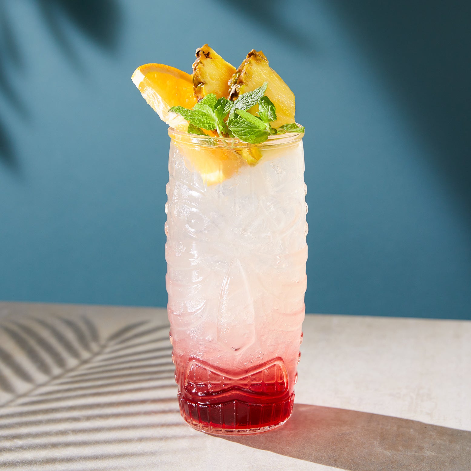 「マイタイ」の夏らしい味わいを、フルーツと花々が弾ける「パイナップル コナ ポップ」、スイカの香りやハイビスカスの酸味を楽しむ「トロピカルアドベンチャー」の2つのティバーナ™のティーで表現しました。ベースにはスモーキーな香りを楽しめる蒸留酒「メスカル」を使用。ポリネシア文化で守り神として愛される「ティキ」をかたどったグラスに注いで、南国の風を感じながらお楽しみください。