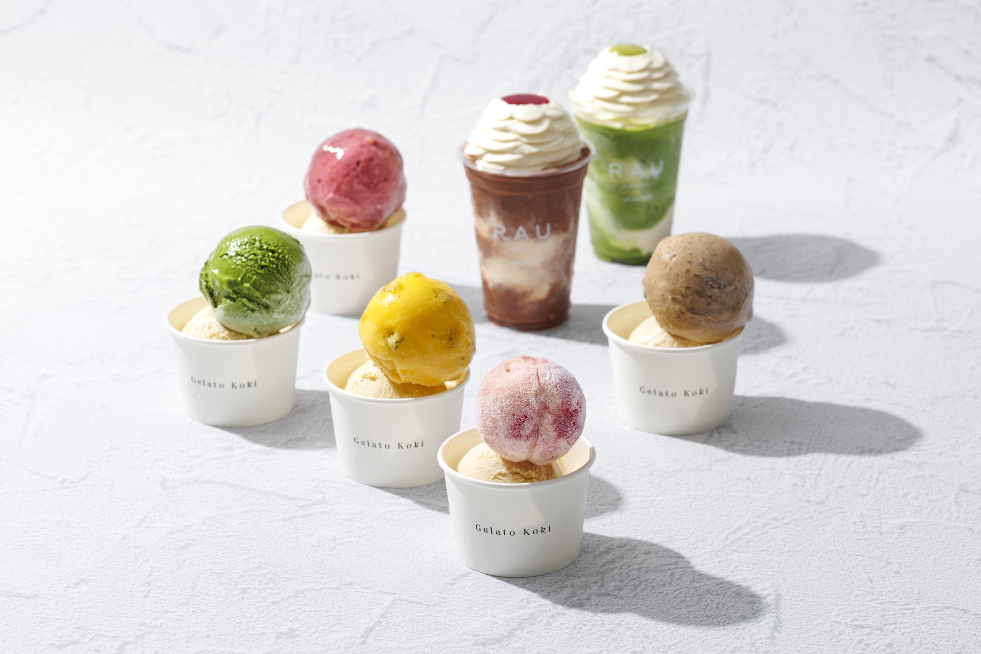 夏の新作スイーツは、オリジナルのビーントゥバーチョコレートや、宇治抹茶を贅沢に使用したスムージー、そして“Gelato Koki”シリーズからは期間限定の新フレーバーが登場します。また、“持ち帰れるアシェットデセール”がコンセプトの、様々な情景を形と味に昇華させる「デセール」のシリーズからは、夏限定のアイスタイプが販売されます。