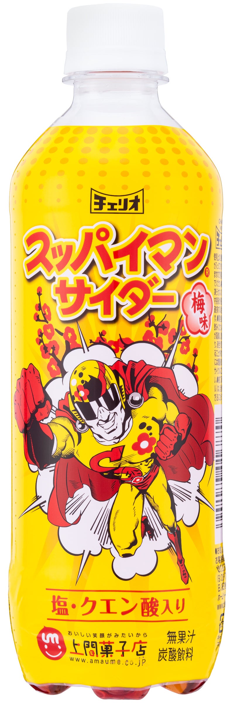 SNSで話題、たくさんのコラボ商品を展開する人気の乾燥梅「スッパイマン」がいよいよ炭酸飲料になって登場します!「おいしい笑顔がみたいから」がキャッチコピーの上間菓子店と、「おいしい・たのしい・あたらしい」でお馴染みのチェリオが、「おいしく・楽しく」を合言葉に、飲める「スッパイマン」を開発。塩、クエン酸配合で、暑い夏にピッタリの炭酸入り飲料に仕上がりました。