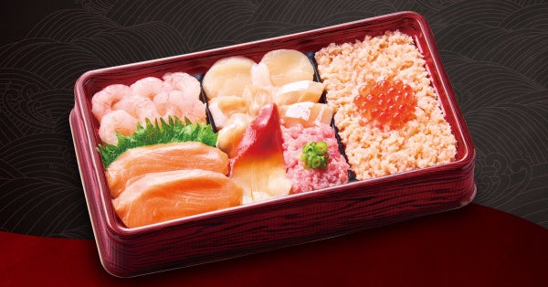 「北海道産紅ずわいがに」のほぐし身と「北海道産生ほたて」を使用し、甘えび、サーモンや北寄貝、ねぎまぐろ等がところ狭しと盛られ、食の宝庫北海道を連想させる『おいしい』がぎっしり詰まったおすすめの逸品です。