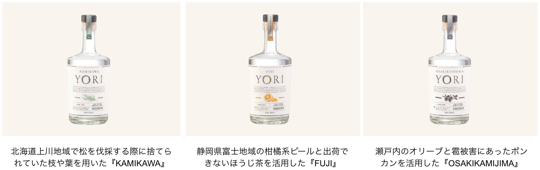 “YORI”は、規格外品などの地域のフードロスに繋がる素材を利活用して作られるサステナブルな国産クラフトジンです。 2024 年 6 月時点で、3 商品を展開する YORI ブランドですが、展開する全ての商品が、世界最大級の品評会にて入賞しました。捨てられてしまうはずだった地域素材の価値が見直されること、地域の魅力を知っていただくことの実現を目指し、これからも活動を続けます。