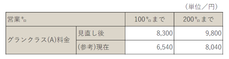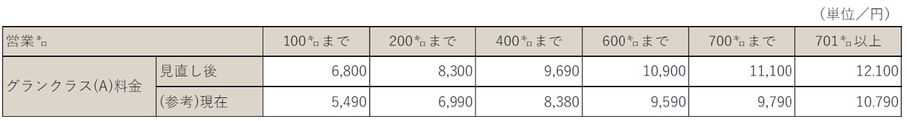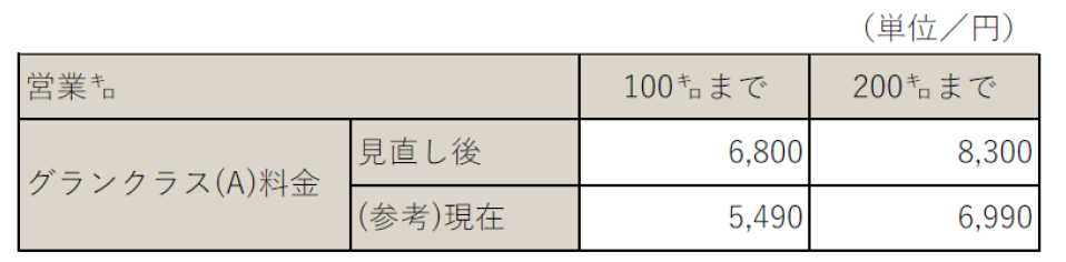 「グランクラス(飲料・軽食なし)」については、現行料金からの変更はありません。