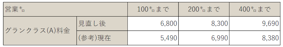「グランクラス(飲料・軽食あり)」の料金について、以下のとおり変更します。