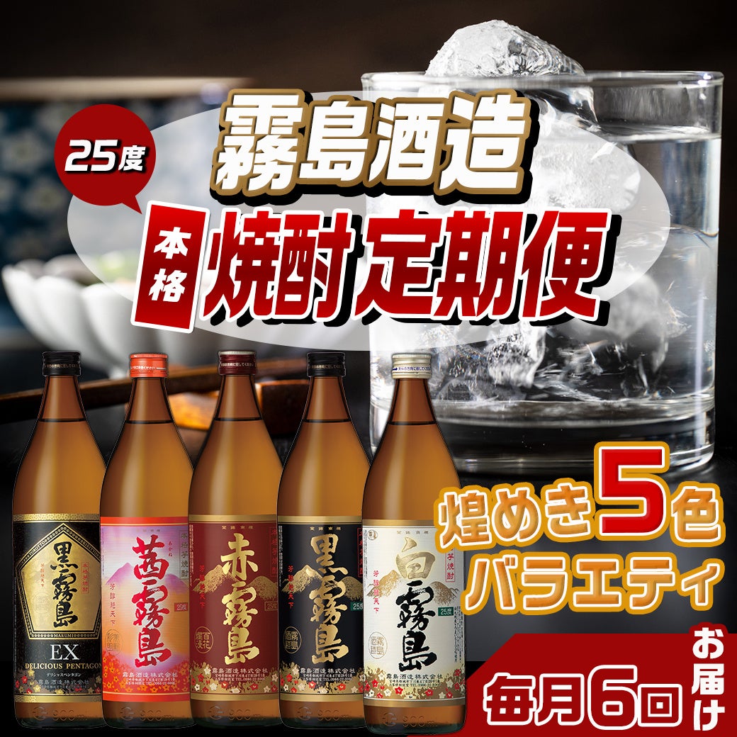 〈6両編成〉【焼酎定期便】[霧島酒造]煌めき5色バラエティ(25度) 焼酎6回定期便≪毎月≫ 【寄付金額】102,000円