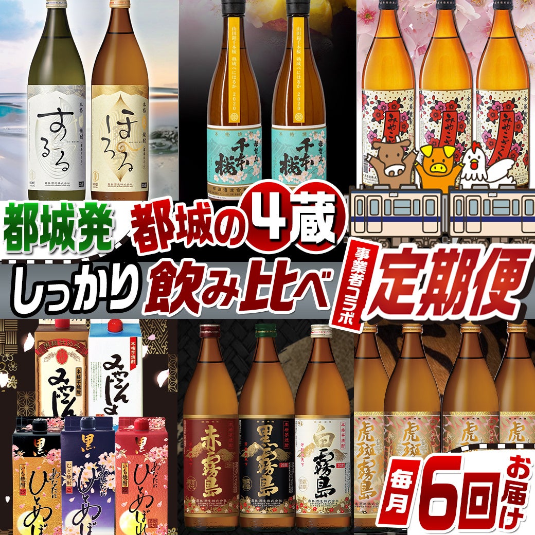都城市を代表する酒蔵『霧島酒造』『柳田酒造』『大浦酒造』『都城酒造』の4蔵で製造する焼酎を堪能できる返礼品です。こだわりの素材を使用した芋焼酎はそれぞれの酒蔵さんの想いを込めて丁寧に醸造されています。お食事との組み合わせも抜群な芋焼酎をご堪能ください!