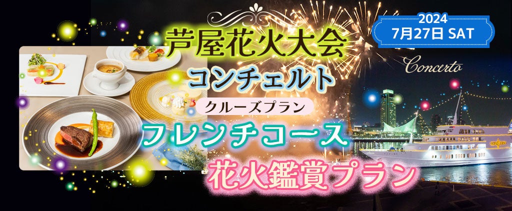 7月27日(土)限定 お一人様¥25,000-毎年夏に大人気の花火クルーズ。芦屋沖花火大会 コンチェルトクルーズプラン船上で花火を見よう!!【フレンチコース】のオンライン予約を開始しました。