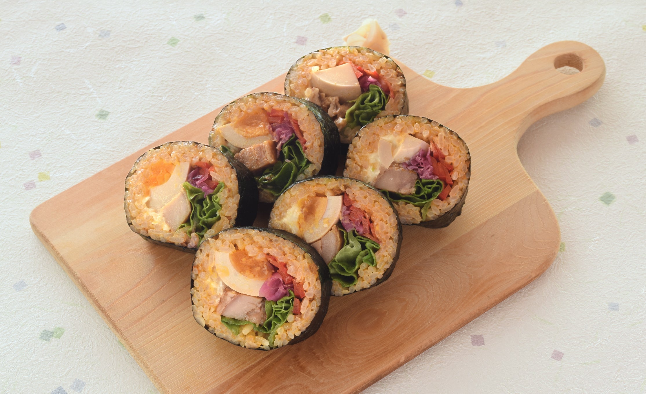 チキンと半熟煮玉子のカレータルタルサラダ太巻