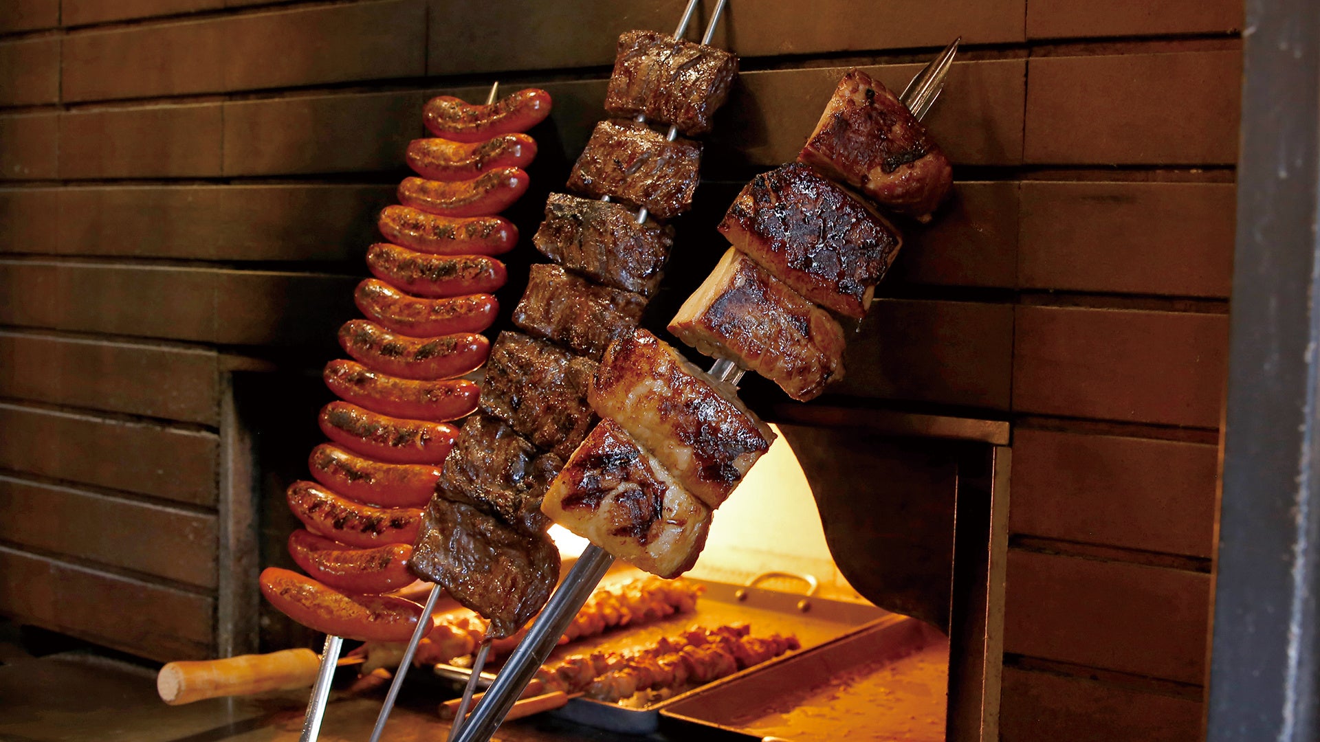 お肉などシュラスコ各種に加え、サラダや包んで楽しいトルティーヤ、さらにはスパイスカレーなども食べ放題です!