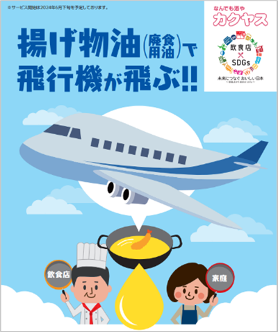 カクヤス、SAF(持続可能な航空燃料)等に再資源化する取組みを開始!2024年6月下旬より、家庭や飲食店から出る廃食用油の回収サービスを始動